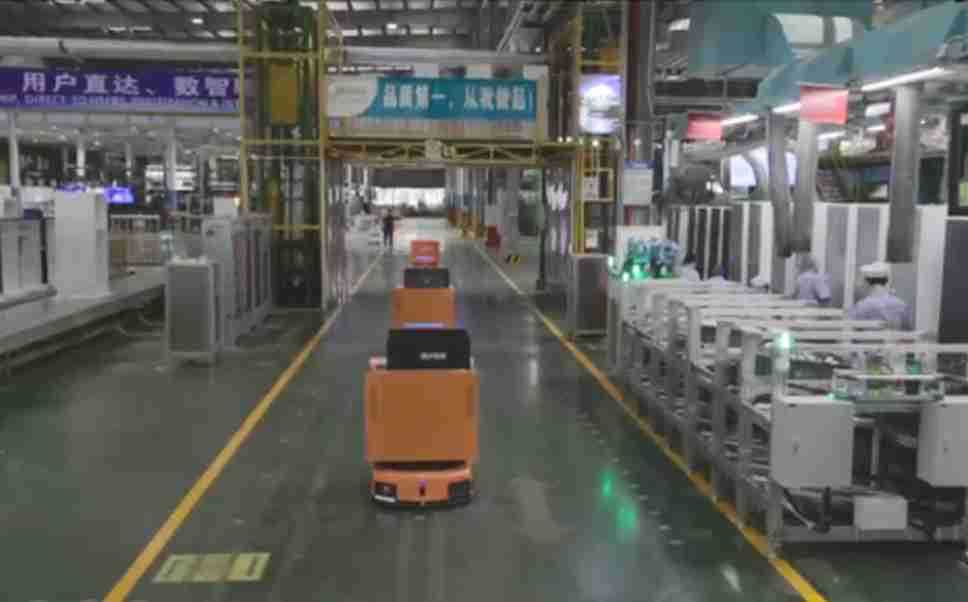 为车载冰箱物流配送打造的智能解决方案,,,,包含产中物流通过潜伏举升AMR搬运至线边,,,,产后成品物流智能仓储,,,,流程包含产中物流智能齐套入库,,,,线边安灯叫料AMR智能配送至线边,,,,成品入库、、、、出库,,通过无人堆高车机器人,,,,智能仓储管理替代人工作业管理,,实现更高存储、、、、更高效率、、更具柔性化的解决方案。。。。